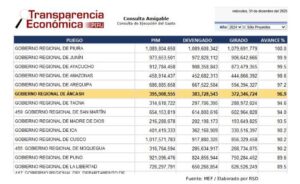 El Gobierno Regional de Áncash (GRA) cerró el año fiscal 2025 en sexto lugar en el ranking nacional de ejecución de gastos de recursos para proyectos de inversión (obras), de un total de gobiernos regionales.