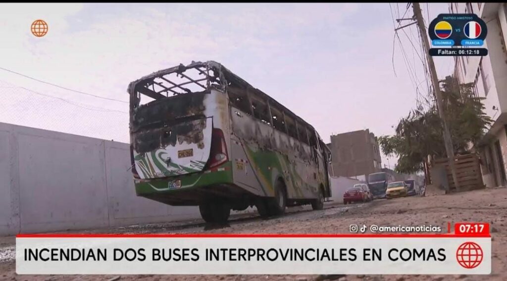 Dos buses interprovinciales de las empresas de Transportes Fama Tours y Perla Express fueron incendiados en una cochera ubicada en el distrito de Carabayllo, generando alarma entre los vecinos de la zona.