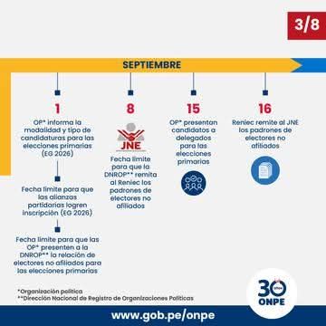 En tanto, el 1 de setiembre último se cumplió el plazo máximo para que las alianzas electorales logren su inscripción.