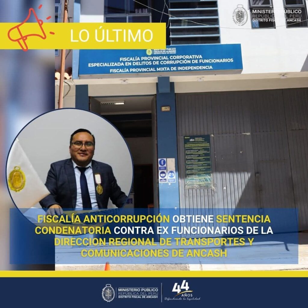 El Fiscal Adjunto del Primer Despacho de la Primera Fiscalía Provincial Especializada en Delitos de Corrupción de Funcionarios George Tony Chávez Julca, obtuvo sentencia condenatoria contra los acusados RUEDA MORENO DIOMEDES MARTÍN (Presidente del comité de selección), PASCO SAN MARTÍN ARMANDO VLADIMIR (1° miembro del comité de selección), VALVERDE ROMERO TANIA NELSI (2° miembro del comité de selección), como autores y NOEL ENCARNACIÓN EDGAR PORFIRIO (Representante del Consorcio NEMS) como cómplice extraneus-, de la comisión del delito Contra la Administración Pública – en la modalidad de NEGOCIACIÓN INCOMPATIBLE y/o APROVECHAMIENTO INDEBIDO DEL CARGO, previsto y sancionado en el artículo 399 del Código Penal, en agravio del Estado –DIRECCIÓN REGIONAL DE TRANSPORTES Y COMUNICACIONES DE ANCASH.