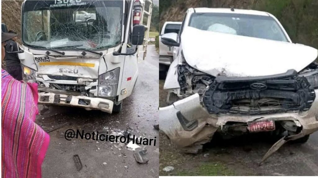 Un aparatoso acc1dente de tránsito se registró la tarde de ayer en la zona de Alta Casa – Machac, distrito de Chavín de Huántar, cuando una camioneta perteneciente a la Municipalidad del Centro Poblado de Pichiu Quinhuaragra c0lisionó violentamente contra un camión repartidor de gas.