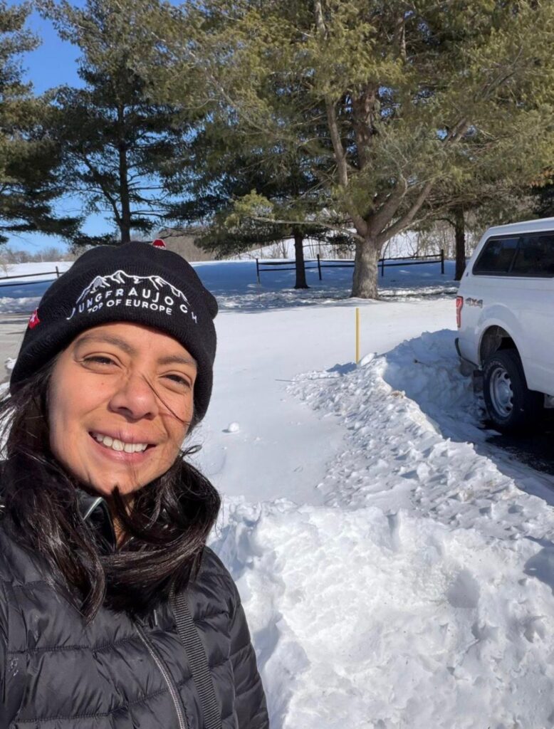 En la imagen se ve a la periodista caminando de un lugar a otro, pero siempre cerca de Adrián y de Rubén, quien no paraba de hablar por teléfono.