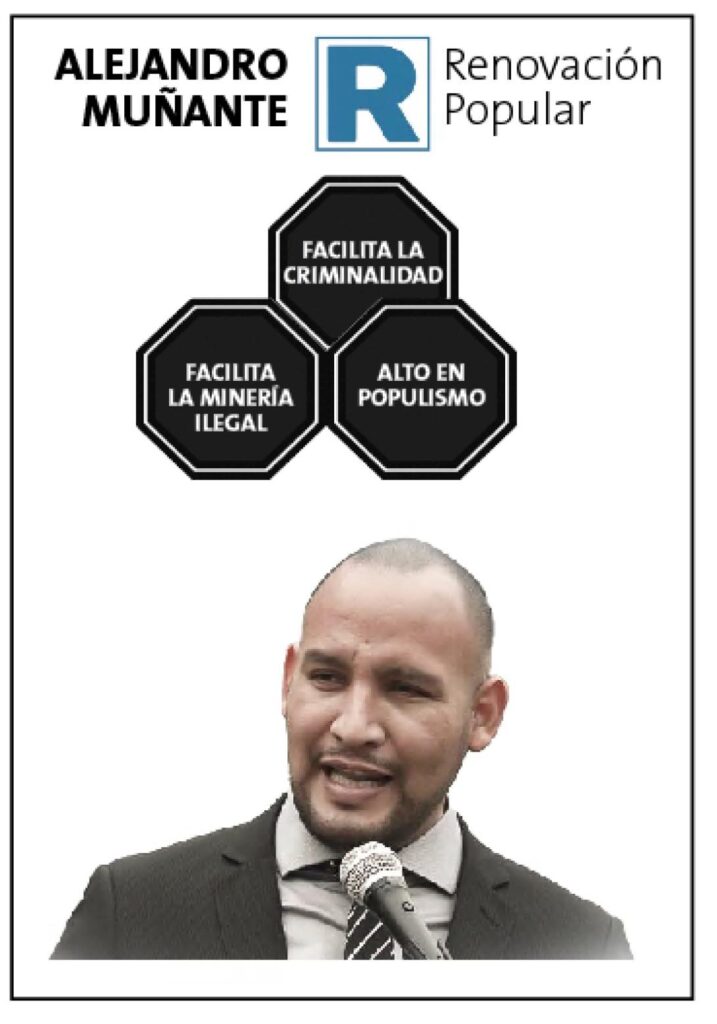 Otros personajes vinculados a la minería ilegal que buscan llegar al Senado son el exlegislador Amado Romero, conocido como «come oro», Jorge Paredes Terry, asesor de la Central de Ronderos de Pataz, Elías del Carpio Gómez, quien cuenta con un reinfo vigente, y Wasington Loaiza Cuba, quien registra cuatro derechos mineros suspendidos. También destaca la expremier Mirtha Vásquez, quien durante el gobierno de Pedro Castillo firmó unos polémicos compromisos que derivaron en el cierre de 4 unidades mineras privadas en Ayacucho y es férrea opositora al proyecto Conga.