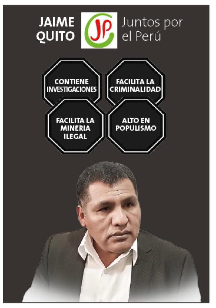 Al respecto, el miembro del Observatorio de Minería Ilegal, César Ipenza, advirtió a Perú 21 que en caso estos candidatos logren llegar al Senado sería un escenario peligroso, debido a que no solo representarían los intereses de la minería ilegal, sino que también buscarían ampliar sus horizontes a otras esferas de poder.