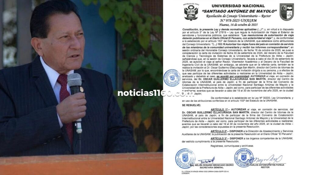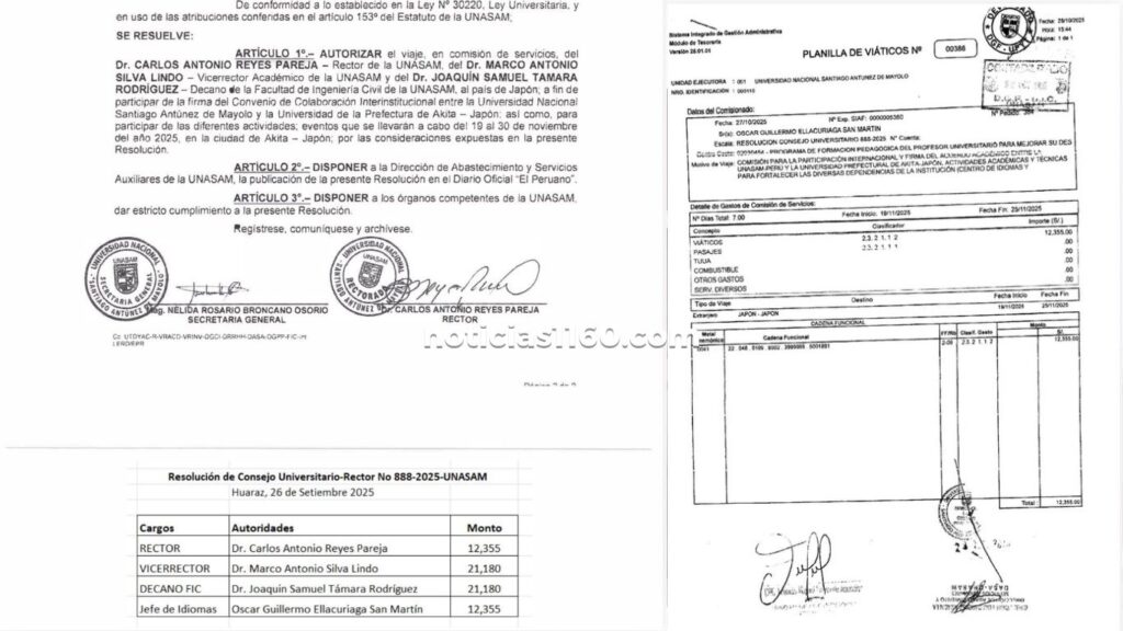 Huaraz. La Universidad Nacional Santiago Antúnez de Mayolo (UNASAM) vuelve a estar en el centro de la polémica tras revelarse que destinó S/ 67,070 para financiar el viaje de cuatro funcionarios con el fin de firmar un convenio institucional, según documentación interna obtenida por fuentes universitarias.
